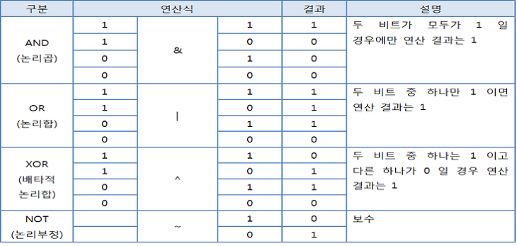 - 데이터를 비트(bit) 단위로 연산