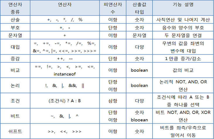 목표자바가 제공하는 다양한 연산자를 학습하세요. 학습할 것