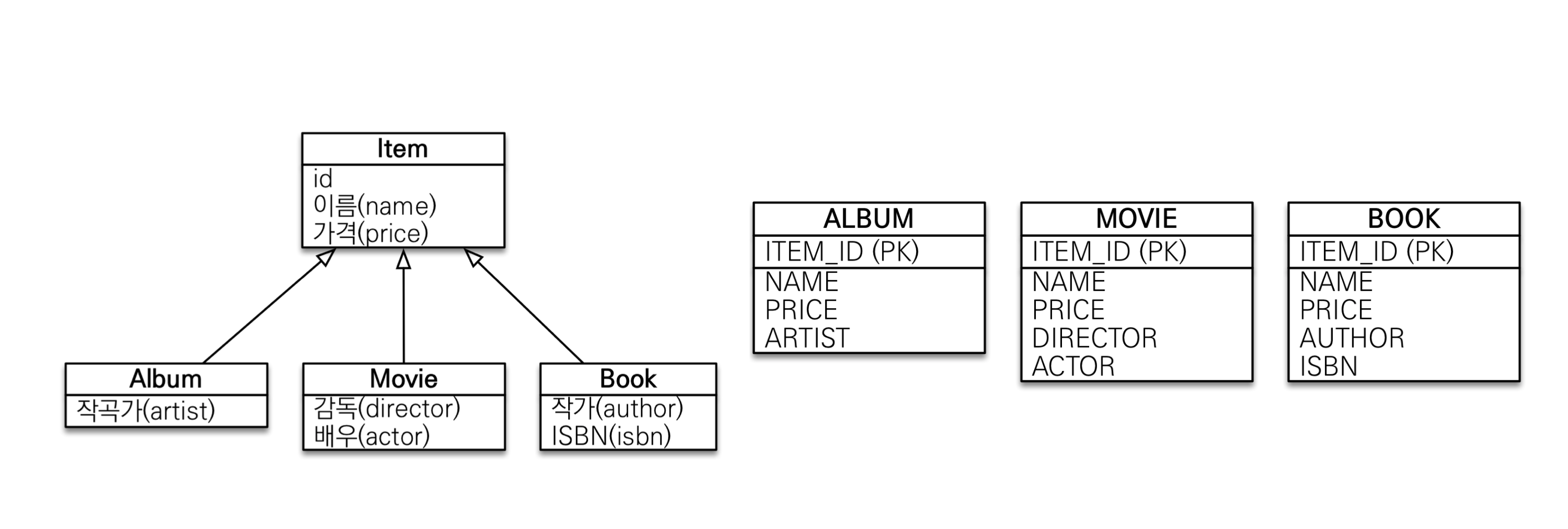 - TABLE_PER_CLASS : 구현 클래스마다 테이블 전략