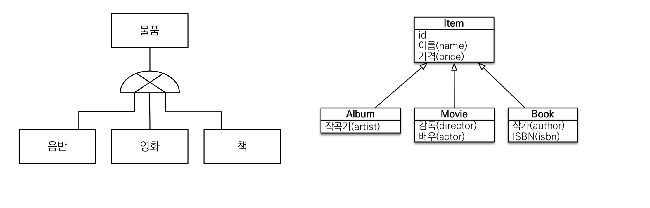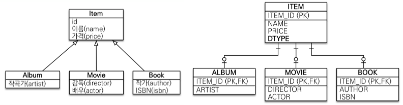 - 슈퍼타입 서브타입 논리 모델을 실제 물리 모델로 구현하는 방법 (JPA에서 세 방법 지원)
